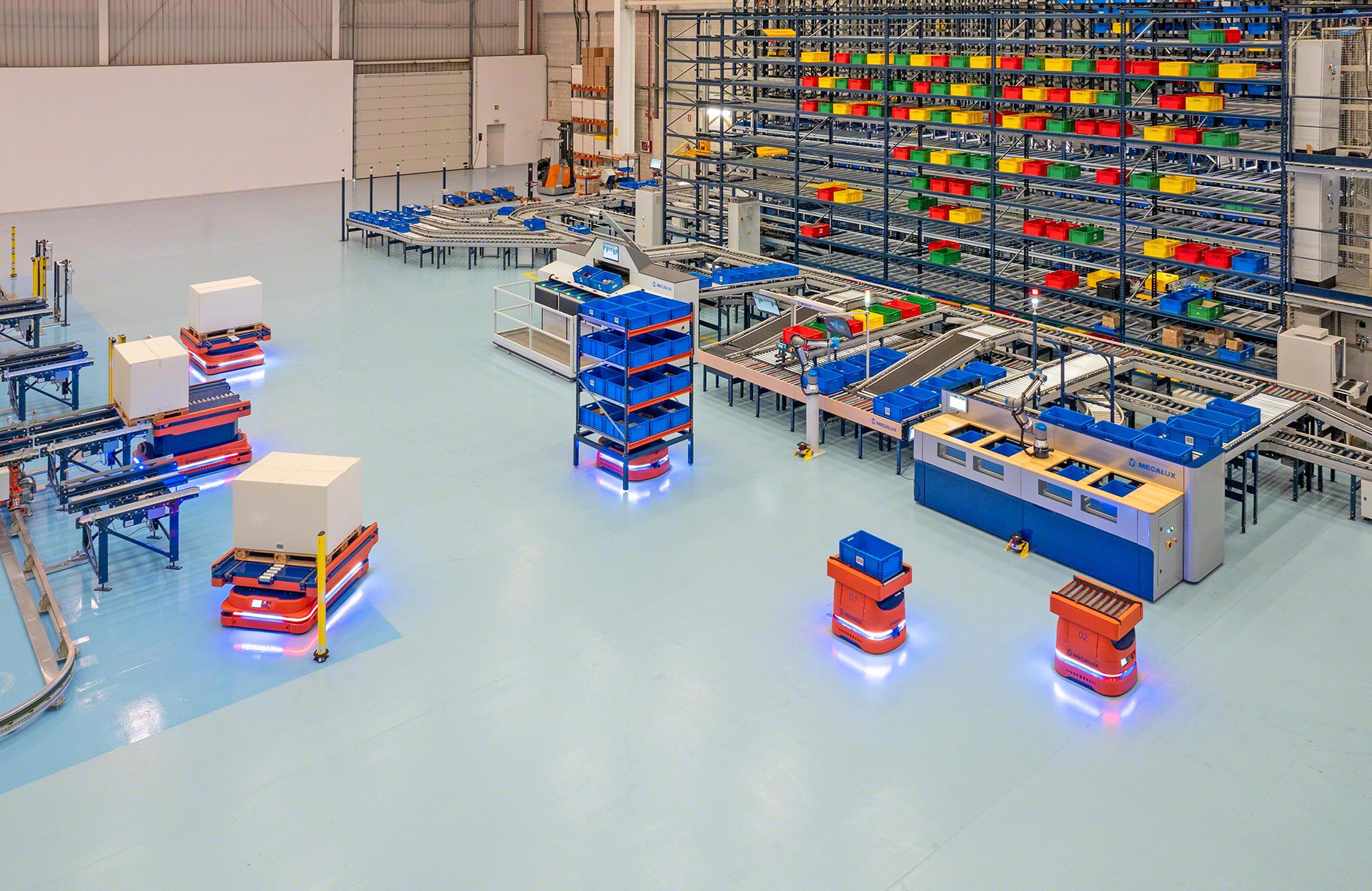 Mecaluxovi AMR so vrhunski transportni roboti, ki kar najbolj povečajo fleksibilnost logističnih tokov v skladišču. Zahvaljujoč vrsti visokotehnoloških orodij se enostavno in hitro prilagajajo vsem vrstam okolij. Poleg tega delujejo varno in učinkovito v različnih scenarijih operativne kompleksnosti.