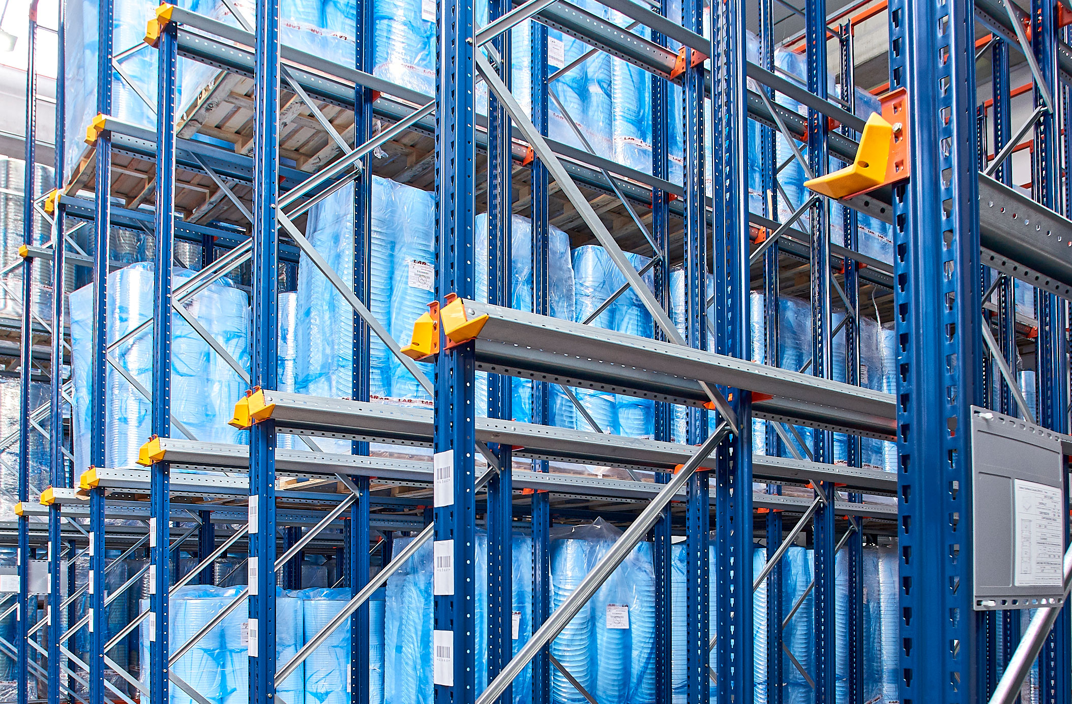 Ustrezen sistem za skladiščenje homogenih izdelkov z nizko rotacijo z velikim številom palet na referenco.