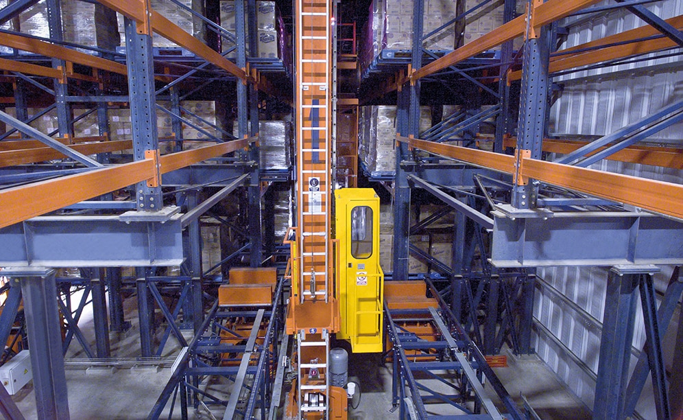 V skladišču z ogromnim številom premikov je skoraj vedno nujno, da je v vsakem hodniku nameščeno regalno dvigalo. Vendar pa je bila v primeru podjetja DECASA prednost namenjena prihrankom pri stroških pred prometom blaga, zato sta za upravljanje osmih prehodov urejena le dve regalni dvigali.