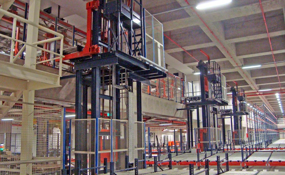 Upravlja ga 15 regalnih dvigal, ki nameščajo blago na regale z enojno ali dvojno globino, ki se raztezajo po celotni višini 24 etaž skladišča. Regalna dvigala imajo skupno zmogljivost 480 kombiniranih ciklov.