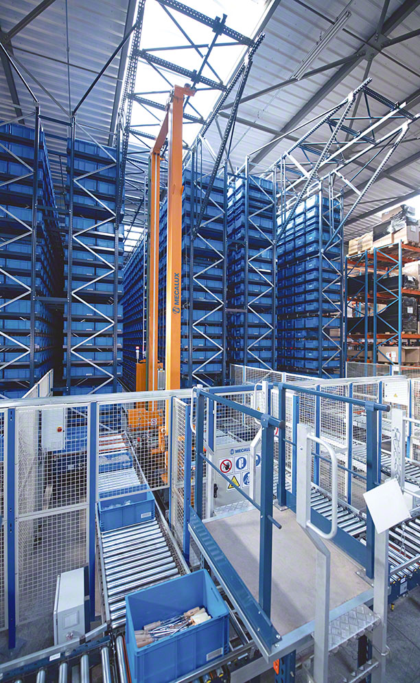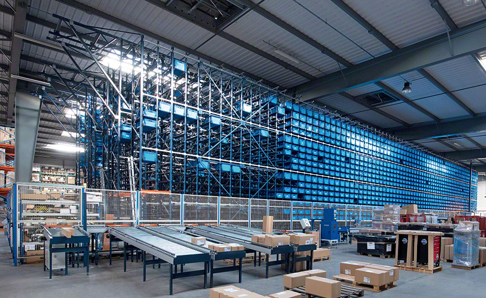 Paletni regali so visoki 8 m in zagotavljajo skladiščno zmogljivost za 6.030 palet. Ti regali, zasnovani za sprejem tovora različnih velikosti, teže in oblike, se uporabljajo za kosovne izdelke, kot so vozički za orodje. Avtomatizirano skladišče za škatle lahko medtem shrani 80 % SKU podjetja SAM Outillage.